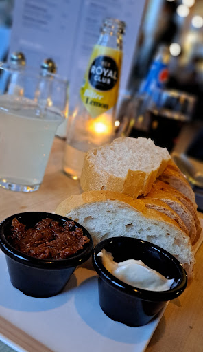 De drankjes worden snel opgenomen en de bediening in studenten leeftijd is enthousiast en spraakzaam. We starten met een broodplankje met smeersels.