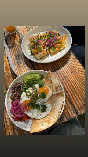 We did not make a reservation as we wanted to stay outside, but inside it was quite full. We waited a bit for a table and managed to get one outside. It took some time for someone to come and clean up the table. We ordered our drinks and asked for a food menu. After a bit we also managed to order the food. I wanted the Turkish eggs but they said they didn't have them anymore, and my boyfriend asked for a Bloody Mary and they were also out of tomato juice. We ordered a lemonade and an immunity booster, and for food I got in the end the Huevos Rancheros and my boyfriend got the tuna melt sandwitch with extra poached eggs. After 30 mins they finally got our drinks, and after another 15 we got the food. They forgot the extra poached eggs and said that they will bring them. After another 30 min they did not bring them and we paid and left. Luckily they removed the extra eggs from the bill. The food was really good, so it was quite a pity that the service was this slow. We wanted to order another round of drinks, but we thought it will take too much for them to bring them.