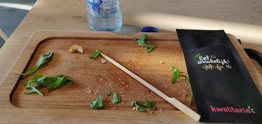Vanavond besloot ik maar om in de Kwalitaria zelf te bestellen. Blijkbaar had de desbetreffende medewerker snot in z'n oren: Van een kroket/ frikadel menu hebben ze zelf maar even verzonnen dat het een satékroket moest zijn. Een bamischijf is wederom niet geleverd. Met m'n goede gedrag dacht ik weer even te bellen.... Geen gehoor. Dit is de laatste keer dat ik hier...