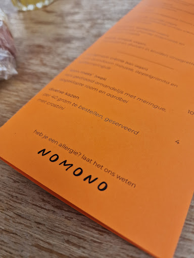 Nomono biedt een doordachte en ‘menselijke’ avond uit, met heerlijk eten, goede drankadviezen en enthousiaste bediening. De sfeer is top dankzij een mooie selectie muziek, goede akoestiek en een toffe inrichting. Alles straalt aandacht en gastvrijheid uit, een echte aanrader.