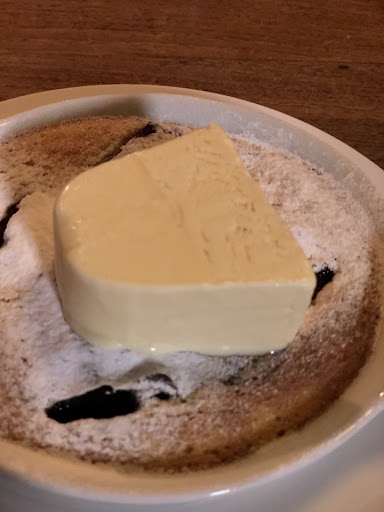 Ik kreeg als eerste gang een stukje reepaté met wat garnering (10). De tweede gang was een fantastische soep van aardpeer met truffel (10). Het hoofdgerecht was een stuk tong mooi opgemaakt met verschillende groenten (9). Dan een kaasplankje met 3 verschillende kazen (een zachte kaas, een harde kaas en een blauwschimmel kaas) en wat brood (10) en het zoete toetje was een heerlijke chocolade mousse met stoofpeertjes (10).