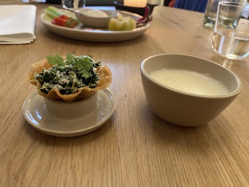 Read moreWas taken here last night (Thursday, 4 course set menu, 59 euro pp), very pleasant experience and relaxed pace. Outstanding gespatcio and watermelon tatar. Langoustine was presented well but unsure of the strawberry as an addition. Found the bread basket to be somewhat of a 'filler' dish that could have come as an included side. Vegan foie gras was interesting but the cold 'sorbet' addition was a bit vexing, especially on carrot. Tempah and wild mushroom brought the meal back on track. Nice dessert to finish. Didn't read many reviews beforehand and not being a wine buff cannot comment on pairing. Water now 4 euro pp, although not limit on quantity. Small beer selection but locally sourced. Very attentive and motivated staff bringing energy and natural customer interaction. For a special night, this could be a choice...