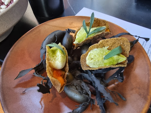 The ugly: We kozen het 7-gangen zomermenu + wijnarrangement, voorafgegaan door een aantal amuses. Amuses waren spot-on. Het zuurdesem en de zelfgemaakte brioche waren heerlijk. De 7 gangen waren qua uiterlijke presentatie en portiegrootte prima; echter de executie in onze mening niet geheel vlekkeloos. 'Kingfish en oester', langzaam gegaarde 'rode biet' en 'langoustine met canteloupe' waren lekker, maar hadden wel allen vrij veel zuur. De wijnen redden het gerecht echter meer dan eens. 'Bolcourgette met za'atar', 'boerderij kwartel' en 'zwezerik met pinda mole' waren smaaktechnisch niet goed in balans en (veel) te hoog op smaak/ te zout waardoor de smaak van het key ingredient wegviel. Erg jammer want de combinaties waren interessant. Het nagerecht met zomerkoning hunkerde naar meer romigheid, dat de zuurte van de vruchtencoulis en de hardheid van de pijnboompit en rozemarijn veel beter tot hun recht had laten komen.