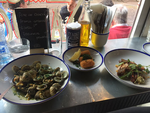 Read moreVery high quality seafood, unfortunately some dishes are a bit heavy on the spices which covers the great seafood taste. We had the cockles with fresh herbs and I think I tasted anis...The herbs mixture was way too strong and exotic, but the cockles themselves were perfect. The filling of the egg with caviar topping included a bit too much curry. We weren't satisfied with the lobster croquettes as you couldn't really taste the lobster. The poached octopus also could have needed less spices/salt but it was a nice dish and the best potatos I have had in a long time (when you talk about the greatness of potatos for 5 minutes in a fish restaurant when you actually think potatoes are unnecessary and you could feed from pasta forever - you know they are good). The chilli Gambas were pretty regular and not really fitting the rest of the dishes. Now our absolute favourite of the evening: the tuna carpaccio. Amazing tuna, nicely fitted sauce and salad, if you like raw fish that is your thing! We didn't have the oysters but they offer various types and I regret not trying them. Service could be better, it was a busy night but there were a couple of moments were the waiters chatted instead of checking if we were okay (we actually wanted to order more and needed water), I get that it is an exhausting job, but we had time pressure and got in trouble for waiting so long. Outside sitting area is lovely on a sunny day! What I really liked is that they specifically state that there dishes are to share on the menu. It's like a seafood tapas experience. Prices are reasonable for what you get (We paid 50 € for two people but also...