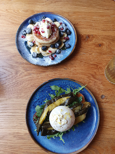 Now to the food, we got the Burrata bruschetts with Zucchini and Pancakes with berries. The pancakes were really good, but I did expect the portion to be bigger for the price. The burrata bruschetta was good as well but the sweet honey (?) was a bit irritating. I wished they would've put tomato bruschetta spread on it - that would've matched a lot better imo!
