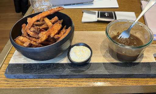 Ordered coffee got no milk or sugar. Asked for the menu card and nobody came to take my order. I went inside and the i told the girl what i wanted and she asked me if i had taken the order from the others. We also had to wait for nearly an hour. When the order arrived , ships and a croquet I asked for Mayonaise and she gave me salad saus. So you can imagine that we where not happy at all and we said we will never come back.