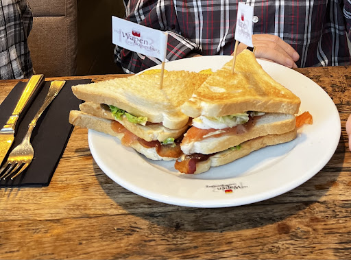 Read moreWe arrived at 14:30 and there were 8 tables with a "reserved" sign in the shade on the terrace (=all of them), and after asking the staff we were told we can only choose a table in half-sun, soon to be in full sun. For 2 hours we spent more than 100€ and only TWO "reserved" tables had guests in the meantime. We ate and drank (a lot) and left and still 6 tables HAD NO GUESTS AT ALL. The chicken club sandwich was extremely dry, not even butter or mayonnaise on it. Brioche with pulled chicken was sort of ok. The staff was not interested, operating on "autopilot" because we are not Dutch so it seemed we will not return here - well guess what,...