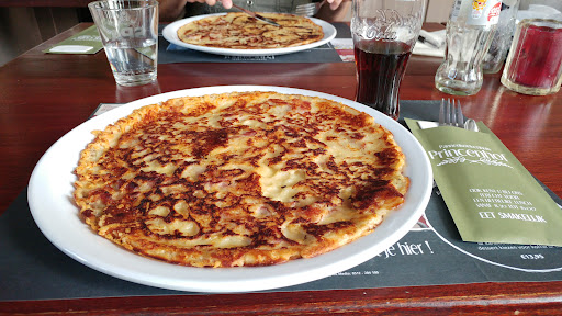 Great Dutch-style pancakes, with a good selection of toppings. Ask for the pancake to be half-and-half if you can't decide, because one pancake is pretty filling on its own. Unfortunately, the acoustics are pretty bad indoors, so a bunch of children being there is enough to raise noise levels to the point that conversation is difficult (which is probably always the case, considering the menu). The terrace is adjacent to a busy road, so sitting outside probably wouldn't be perfect either. The service was good, though there was a weird thing where they said they didn't serve tap water and then gave it anyway...