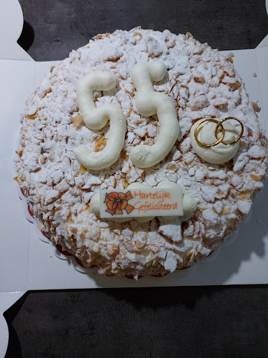 Read moreVrijdag telefonisch contact opgenomen om te vragen of het mogelijk was om op maandag een vlaai te bezorgen bij het vakantieadres van mijn grootouders, welke 55 jaar getrouwd zijn. De ovens stonden op maandag helaas niet aan.. Desondanks kreeg ik een geweldige andere mogelijkheid aangeboden. Zeer vriendelijk en meedenkend! De vlaai was ruim optijd bezorgd en ik zag later dat hij ook nog is prachtig versierd was. Ik ben heel erg blij met jullie...