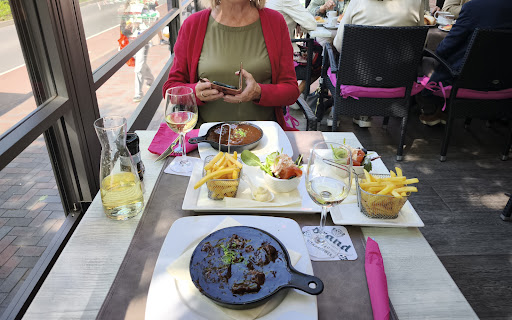 I came here to have a nice lunch with my friend and it was embarrassing seeing how the waiter treats the customers. We sat inside and had to wait maybe 3-4 minutes for her to get us the menu .When we were ready to order we asked if we could get the pasta without shrimp and she said it wasn’t possible as it was already ready which was already annoying so we ended up getting the pasta , a burger and a starter bread . We waited for her to get our starter since starters should arrive before the main course and she brought it all together. It was very annoying since starters should always come first .When i called her she rudely rolled her eyes at us while she came to our table. The burger was BLAND (also paying 17 euro for a burger they get from albert heijn is a bit absurd but okay..) i called the waiter over to show her the pasta and how it was oily and she was extremely prideful that there was no sauce but only oil.. yikes the bread was very hard and expensive.