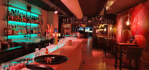 Read moreWereld-Klasse-Bediening. Het is mij een ware raadsel hoe de barmannen en obers van deze horecagelegenheid ZO VEEL ENERGIE hebben. Constant zijn ze bezig met zorgen dat iedereen een leuke tijd heeft. Zelfs als iedereen voorzien is van drankjes aan de bar aarzelt een van de barmannen geen seconden om de klanten wat extra's te geven in de vorm van een WEERZINWEKKEND POTJE FLAIRTENDING. Om zo een goede barman te zijn moet je haast wel in het buitenland horeca-ervaring hebben opgedaan in een gigantische toeristische trekpleister, Cherso of Albufeira ofzo. Dit zou ook verklaren warom de bediening perfect engels sprak