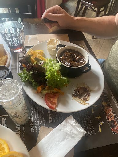 The food is really good. Very tasty. Definitely worth a visit. The beer on tap is also good. The people are very friendly. They have outdoor and indoor seating. Good music indoors. There are some books and games and a pool table in case you are interested. It was a little more expensive...