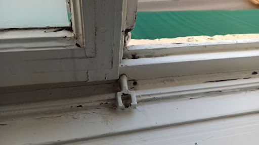 Dan de kamer. Dit was een ramp. Een piepklein hokje vies, de verwarming zat onder het vette stof de kozijnen waren zo rot dat het enkele glas er bijna uit donderde en over de badkamer kunnen we kort zijn; waardeloos. Naast het bed was geen nachtkastje, er hadden planken gezeten maar alleen de schroeven staken nog uit de muur.
