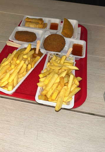 In het donker, na 20:30 waren wij op zoek naar een snackbar. Wij waren aangenaam verrast toen we de twins nog open vonden. Bij de eerste stap die je binnen zet, reis je 15 jaar terug de tijd in. De kleur, het interieur en de ijshoek doet je denken aan de jaren 2010. Wij hadden genoten van bamischijven, kaassoufflรฉs, patatjes, mini loempiaโs en milkshakes. (Ja we hadden honger). Alles smaakte zeer goed. En het werd opgediend op een prachtig rood dienblad. Wij genoten buiten van het eten aan hun picknicktafel.