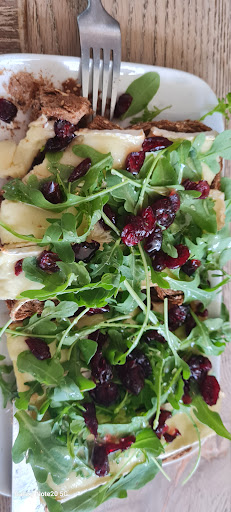 I ordered the brie with arugula,cranberries and honey which tasted lovely. It looks like a small dish but it was enough for me and I'm still not hungry after 5 hours. The bread is 'oerbrood' which is lovely and you can choose whether you want white, brown or spelt bread. I also ordered a small freshly squeezed orange juice. The waiter was friendly and the meal and drink was under 15 euros which is...