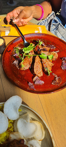 Read moreWe had a 'heavy' lunch (most Dutch people eat sandwiches for lunch) and it was nice. It tasted great and the atmosphere was lovely. The portionsize was a bit confusing to me though. I ordered the chickenthighs with french fries and my friend ordered steak, but we had to share one tiny bowl of fries. It didn't make any sense to me. I got three huge slices of chickenthighs which is way too much for lunch, and we had to order another bowl of fries. The bowl of fries that we ordered was bigger than the one we got first. If we had that one to share it would've made sense. It took them a long time to bring the fries, our meat was almost cold when the fries arrived. My son had the poffertjes and he...