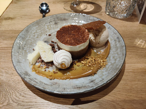 The Carpaccio was delightful, the flavours were well balanced and all very clearly present, it was a simple but good dish. The ribs were sadly rather disappointing, the sauce was barely present and quite bland. Sadly the ribs were also unevenly cooked, one side being a little charred while the other remained undercooked. While I really quite like the concept of a surprise dessert, I felt the restaurant had taken too much of a risk as to what the surprise was. The dessert was a small cylinder of whipped cream, a mocha jelly and a chocolatey crumble with garnishes of white chocolate mousse, caramel and meringue. While generally tasty, it was quite intense and the textures did not blend well.