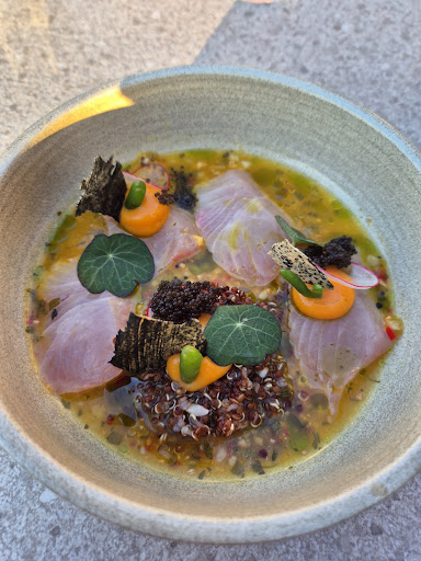 My only critique is that I was treated poorly by the lady with dark hair who does the front of house. I asked her what the fish of the day was, and she told me “it’s listed on the 3-course lunch menu”. I didn’t understand what she meant at first, and looked for it on the regular menu. She didn’t say anything, just stood at the table watching me, Finally I picked up the right menu, and I couldn’t get it open because of my nails. All this time, more than a minute, she just stood there at our table with a smug look on her face instead of just telling me what the fish of the day was. It was almost as if she enjoyed humiliating me. Later during our meal our waiter came by and I asked him some questions about the drinks and stuff, and she came to take him away from our table. Her attitude towards us was very weird and it’s genuinely the only reason I couldn’t give this...