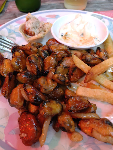 Auf der Karte ist nicht immer alles verfügbar, z.B. gab es keinen Kinderburger, weil die Patties fehlten. (Für mich spricht das für das Gasthaus - es ist echt authentische Gastronomie, das nicht immer alles verfügbar ist.) Ich hatte die gebratenen Muscheln mit hausgemachter Kräutermajonaise, beides wirklich sensationell lecker, allerdings braucht man danach einen Schnaps. Das Essen dauerte relativ lange, das war aber bei allen Tischen so. Unsere Tischnachbarn bekamen das Essen gleichzeitig mit uns, obwohl sie schon vorher bestellt hatten. Im Urlaub kein Problem, wer allerdings kleine Kinder hat, sollte ein Spiel mitnehmen. Unsere drei erkundeten beim Warten den Kirchhof gegenüber, wo dankenswerterweise eine Katze für Ablenkung sorgte. Wirklich zu empfehlen ist auch die Waffel mit Erdbeeren. Die dicke, belgische Waffel war cross und hausgemacht, vor allem nicht (wie oft üblich) völlig überzuckert. Die Erdbeeren superfrisch und sehr aromatisch. Auch die Preise empfanden wir als vergleichsweise günstig, zu fünft mit zweimal Nachtisch lagen wir bei gerade mal 95 EUR. Abgerundet hat diesen wundervollen Abend das Gespräch mit unseren netten Tischnachbarn: es wurden Bilder der Enkel gezeigt und Reisetipps ausgetauscht. Wieder einmal finde ich es bemerkenswert, wie viele Niederländer Deutsch können, und ich schäme mich, dass ich kaum zwei Worte in der Landessprache kenne (ich gelobe Besserung!) Uns hat es sehr gut gefallen, wir kommen ganz...