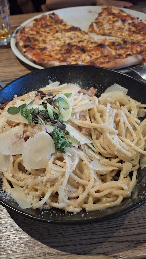 Read moreWe had Dinner yesterday at the Pizzeria and were lucky to sit outside. The service was very friendly but quite inexperienced- we showed the waitress how to open the wine bottle (and looking at other reviews we were not the first ones to do that). Service was quick but we also were there at eight thirty/nine. The starters: the carpaccio was dry, pre-cut, with no oil on it and not worth its price, the garlic bread was okay but a lot for a starter (it's like a whole Pizza). Main course was two Pizza's, the dough was quite dry and tasted like yeast, the toppings were fine but overall the Pizzas were not great, we would even say it was our worst Italian good experience in years :-( For the quality of food you receive the prices are quite high- even for a...