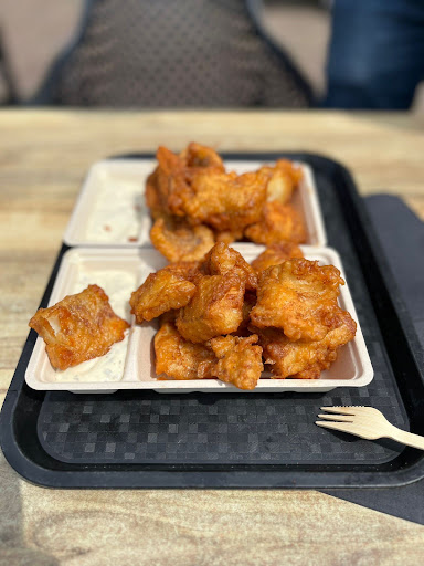 We dachten kom gaan we lekker visje eten bij dolfijn lekkerbekjes en kibbeling besteld, nou was het klaar en konden we het heerlijk op eten dachten we . Na paar happen. Genomen te hebben droop het vet uit de lekkerbek en kibbeling ik ging ermee terug werd niet serieus geholpen door het meisje die liet het over aan een gozer die dacht dat ie bodybuilder was zo breed liep ie met vol tattoos en die zei me nou die vis is goed vers waarop ik zei nee het vet druipt er uit . Hij zei verders niks dan alleen komt goed . Vervolgens na 20 min wachten ben ik naar hem gegaan en zei hem waar blijft me visje waar op hij zei ik ben lief en komt ok , vervolgens na 15 min wachten kreeg ik een bord met wel 20 lekkerbekken op bordje we waren helemaal verpoupereert wat is dit nu weer voor uitdaagt effect van uit hem. We hebben de vissen op gepakt en bij hun gezet en zijn echt kwaad de zaak uit gegaan. Wat een slechte service en wat een stelletje kinderen zonder gast gerichte service wat ze niet kunnen en lang leven de haccp regels .