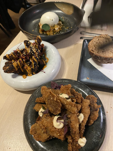 Het speciale 3-gangen menu was in alle opzichten fantastisch. Eerst kregen we heerlijk brood met boter & olijfolie. Toen een selectie van 3 bijzonder interessante voorgerechtjes. Een klein culinair avontuurtje …