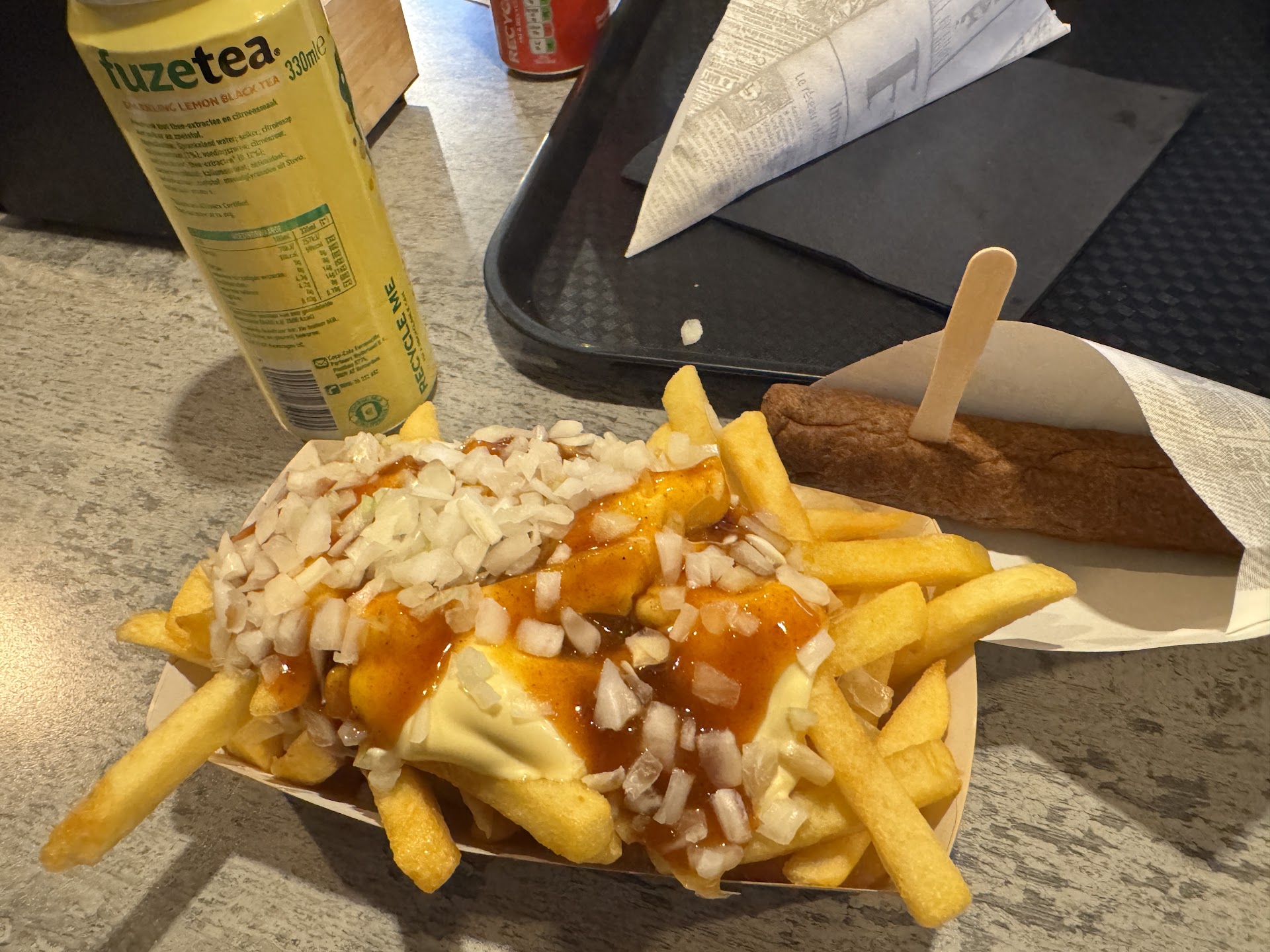 Qua eten: • Frikandel van mijn vriendin was te lang doorgebakken en keihard van binnen. • Mijn Mexicano was juist het tegenovergestelde: nog deels koud en had langer moeten bakken. • Friet was oké, maar zonder zout erg flauw. • De zelfgemaakte satésaus was wél een hoogtepunt, die was echt top.