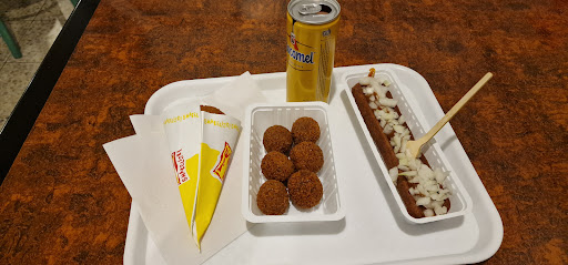 We besloten om beide een portie friet te nemen, één met zuurvlees en één zonder saus. Verder bestelden we een mexicano en een spoetnik, die meer lijkt op een normale gehaktbal. De snacks waren lekker smaak en hadden gelukkig hun smaak behouden. De bestelde frieten bleken afbakfrieten die wel redelijk krokant van smaak waren.Over de service kunnen we vrij kort zijn.. ondanks de enorme drukte waren de eigenaren hartstikke vriendelijk...