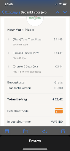 Read moreI was ordered 2 type of pizzas and coke, courier give me only 2 pizzas and say that he is forget about the coke I wait 15 minutes to my coke, but it’s not a problem all people has falls, but from New York pizza 4 type of cheese I didn’t expect this, the pizza of 4 type of cheese was burnt and hard like a stone so can’t be eatable... Second Tuna Treat Pizza was normal, but I would not say that it is very tasty and juicy (tuna be...