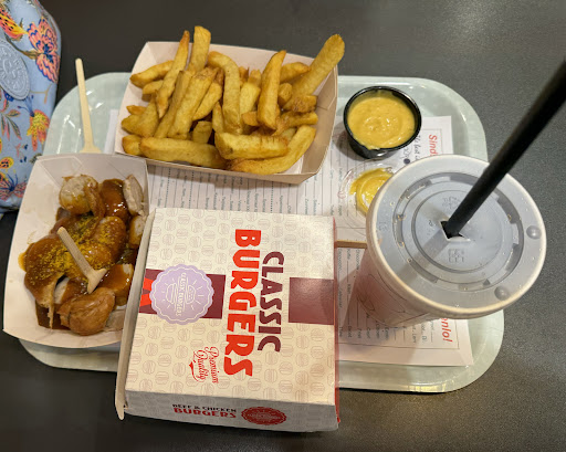 Read moreLeckerer Imbiss direkt aufs Venlo's Einkaufsstraße. Wir hatten 2 verschiedene Burger, ich meinen noch mit Pommes. Die Burger-Buns sind etwas weicher als man es in Deutschland gewohnt ist aber sehr lecker und knusprig. Der Burger meiner Frau mit Käse, Zwiebeln und einer tollen Sauce war einfach klasse. Zwar eine echte Aufgabe ihn zu essen ohne sich einzusauen, aber unglaublich lecker. Meiner war mit Onionrings. Geschmacklich wirklich gut. Die Pommes bekommen 5 Sterne. Da können sich deutsche Imbisse eine Scheibe von abschneiden. Frisch geschnittene Pommes mit Haut. Unglaublich lecker. Unser Fazit: Wir sind so oft an diesem unscheinbaren Imbiss vorbei gegangen, werden aber in Zukunft bestimmt...