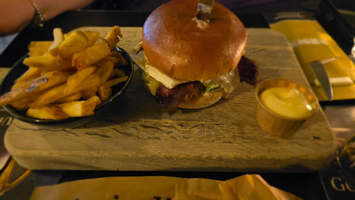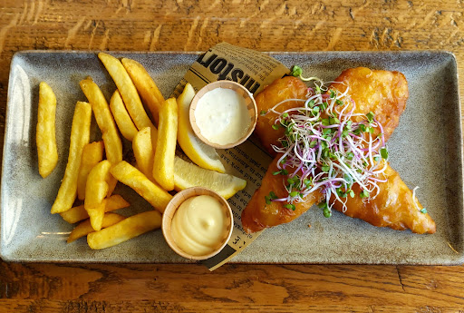Read moreHübsches gepflegtes Restaurant mit großer Terrasse und Ambiente eines Irish Pubs. Die Bedienung dauerte etwas länger als gewöhnlich, da es bei tollem Sonnenschein entsprechend gut besucht war. Einige Gerichte sind an bestimmte Uhrzeiten geknüpft, somit konnte ich um 14 Uhr nicht in den Genuss des Lachsfilets kommen, da dieser erst ab 17 Uhr bestellbar war. Also nahm ich Fish & Chips, zwei sehr lecker panierte und frittierte Fischfilets und leckere Fritten mit Sprossen Deko und Majo obwohl ich keine bestellt hatte. für den Preis hätte ich mir einen mini Beilagen-Salat gewünscht, aber nun gut. Hamburger und Bitterballen und das Brot mit 3 Spiegeleiern meiner Begleiterinnen waren ebenfalls schmackhaft und frisch. Die Waschräume waren ebenfalls rein, nur etwas Überschwemmung am Waschbecken. Aber das kann bei der Vielzahl Gäste...