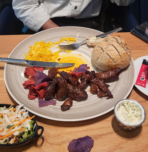 We zouden hier 10 okt 2024 gaan lunchen en een uitsmijter gaan eten. De prijzen hiervan lagen tussen de 11 euro en 15 euro. Niet goedkoop. We ontdekten op de uitgebreide kaart (kunt hier werkelijk van alles eten) een lunchgerecht boneless ribs met brood. Ook niet goedkoop voor een snelle lunch, maar we vonden het echt lekker! Lekker vers brood erbij met kruidenboter. Bediening heel snel en...