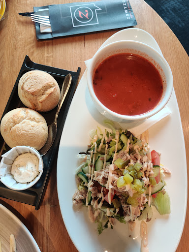 Het zag er gezellig uit, het was goed druk dus als oud Venraynaar durfde ik het wel aan bij Zowyzo. Eerst bestelden we een cappuccino. Hadden we het hier maar bij gelaten. Dan had Zowyzo 4 sterren gekregen van mij. Maar we bestelden ook eten.... Een combi tomatensoep met een kleine tonijnsalade en een maaltijdsalade carpaccio met frietjes ipv brood.. Wat was goed? De frietjes, En redelijk? Beide salades. Wat wij echt niet lekker vonden was de heel zoete dressing over de salade. Indien. goed geproefd met zoetstof,. Je proefde bij elke hap vooral deze overheersende weeïge zoete dressing. Gewoon slecht was de tomatensoep. Ouderwetse groene emmer van Knorr vol rode poeder. Heet water erbij en voila " verse tomatensoep". Bah! Koop tomaten, tomatenpuree, wat wortel, bleekselderij en bouillonblokjes bij de groothandel ipv zo'n groene emmer en maak fatsoenlijke tomatensoep. Niet meer van deze tijd!!! Voor de cappuccino komen we terug, en het gebak zag er ook goed uit. En als we willen lunchen zoeken we een...