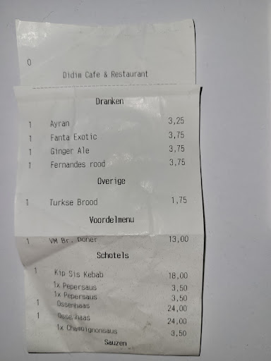 Read more2 broodjes kipsis besteld en 2 porties friet. €25 (met fooi) betaald. Men brengt mij 1 broodje kipfilet in een hamburger broodje (slordig) en 2 porties friet (goede friet). Ik bellen met moeite uiteindelijk toch gelijk gekregen nadat er werd gezegd dat het niet kon dat ze het zelf hebben ingepakt, de bezorger had een bestelling door elkaar gehaald (dit is niet waar want het was ingepakt met inderdaad een zak 2 friet en 1 broodje kipfilet) dus dat kan niet. Uiteindelijk werd het bezorgd 2 kipsis broodjes... zou je denken, wat zit er in de verpakking. 1 broodje kipsis ipv 2 broodjes. Nog achter de bezorgers aangerende achter de auto van hey jullie zijn weer 1 broodje vergeten maar die gingen vol gas weg Het brood zelf was nog kleverig van binnen niet goed gebakken het deeg was rauw vanbinnen en de kipsis smaakte nergens naar veel te lang op de grill. Eindstand beste didim, uit ongenoegen heb ik alles in de prullenbak gegooid, dit gaat nergens meer over kan overal begrip voor hebben... maar en leveringsfout en slecht eten en ook nog eens één broodje te veel betaald van €8,- chapo mannen. Ik woon net in Leerdam... de eerste keer dat ik bestel en ook echt de laatste keer. Succes met de zaak...