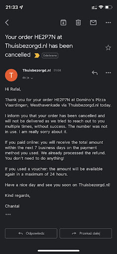Read morethe pizza was not delivered, the supplier did not call, despite asking for a phone call because the building is closed, the restaurant manager claims that they could not reach me, I was not even informed about the cancellation of the order, I went to complain to the pizzeria and asked to call me on my number, I was laughed at by the restaurant staff, we were mocked and laughed at that we speak English and we were discriminated against, I have a video showing how the staff refuses to call my number and how they laughed at us, everything will be sent to the dominos network...