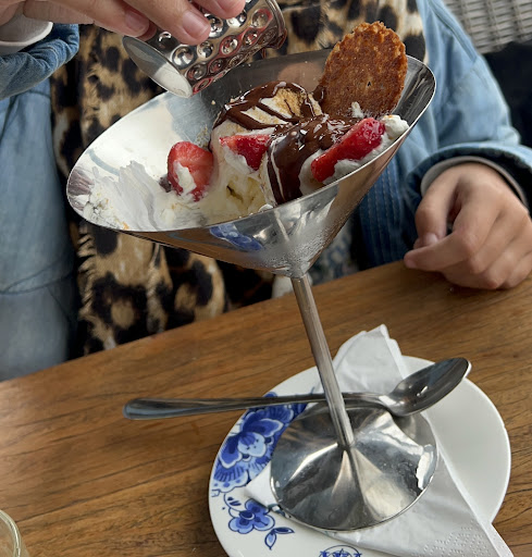 Later nog een dame blanche besteld uitdrukkelijk ZONDER slagroom, deze was er snel maar MET slagroom. Jammer. (Dit was overigens vorig jaar ookal zo, we hadden het kunnen weten). Misschien is zonder slagroom niet mogelijk omdat ze al prefab klaarstaan in de vriezer: maar dat had de serveerster dan aan moeten geven⦠Serveerster bood niet aan om een nieuwe Dame blanche te halen ditmaal dan zonder slagroom. Jammer.