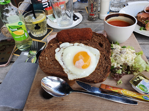 Read moreSamen met mijn vrouw op het terras geluncht. De twee jonge meiden die ons bedienden deden zichtbaar hun best, maar werden volledig in de steek gelaten door de leiding. Geen structuur, geen begeleiding, geen professionaliteit. Wat we meemaakten, was pijnlijk. En prijzig! Het bier was lauw, het eten ronduit slecht. Mijn broodje kip bestond uit kurkdroge kipfilet op nat, smakeloos fabrieksbrood. Op de kaart staat dat het van een lokale bakker komt, als dat klopt, is dat schandalig. Als het niet klopt, is het misleiding. En zeer kwalijk! Toen ik mijn klacht deelde, kreeg ik letterlijk te horen: “Je had het eerder moeten zeggen.” Nee, ik betaal niet om hun werk te controleren. Ik betaal voor een fatsoenlijke lunch, die we niet kregen. We betaalden uit beleefdheid. Zelfs fooi. Maar eerlijk? Wat hier gebeurt is horeca onwaardig. Wij hebben zelf meerder zaken door het land. De fout ligt niet bij het jonge personeel, maar bij de uitbater. Voor mensen met smaak en zelfrespect:...