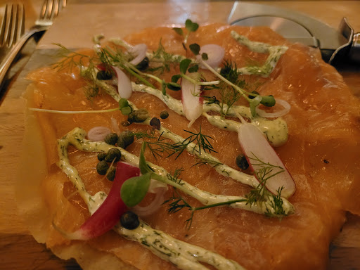 Read moreIn de dop een mooi restaurant. Lekker eten gebaseerd op mooie producten en aandacht voor presentatie. Geen kwantiteit maar kwaliteit. Echter door wellicht te weinig personeel of meer aandacht voor alle tierelantijnen dan voor de gast, was de tijd tussen binnenkomst en eerste gang anderhalf uur. Er was wel een broodje met smeersel, maar het leek meer op de drankrekening te laten groeien wat ook meerdere malen mis ging door niet bestelde drankjes te brengen of te vergeten iets te brengen. Toppunt was wel dat we met 7 personen 2 bakjes frieten kregen die in de meeste restaurants de grote van een één persoons portie zouden zijn. Na vragen zijn er 2 extra bakjes gekomen nadat de meesten hun gerecht op hadden. En als klap op de vuurpijl hebben we voor die frietjes 8 euro extra betaald! Dat we daardoor 10 euro van de fooi af trokken werd ons niet in dank afgenomen en we mochten daardoor zelf onze jassen zoeken die door het personeel waren opgehangen. Oftewel, het zal vast af en toe goed gaan, maar mij ga je er...