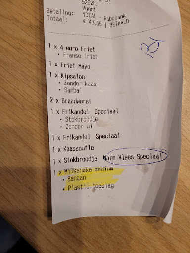 geweldige friettent ik ben er mee opgegroeid bestel er al jaren elke vrijdag en heeft me altijd naar het einde van de week laten uitkijken omdat we dan frietjes eten. de curry heeft een zalige smaak en de friet zelf ook echt overheerlijk. en de snacks ook vooral de frikandellen overheerlijk. ik ben er mee opgegroeid en hoevaak ik het ook maar eet ik word er niet moe van of zo ik blijf er van genieten dus zeker een aanrader! ik lust eigenlijk geen saus maar de sauzen bij deze friettent zijn echt anders of zo echt heerlijk. 5+...