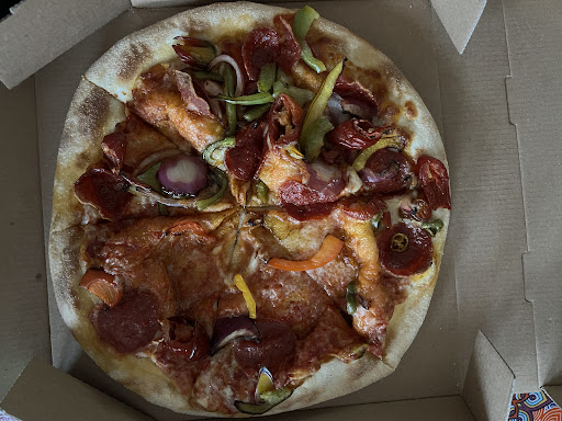 Wat een treurige bende daar. Bewust aan de balie gaan bestellen zodat ik kon aangeven graag een fatsoenlijk belegde pizza te willen, zonder megarand van 3 -4 centimeter met niks… resultaat: flikker alle garnering maar op een hoopje, kip en vlees is er overheen gevlogen en als klap op de vuurpijl in plaats van de bestelde zwarte truffel pizza een of ander vegetarisch ding gekregen. Die teruggebracht, beklag gedaan en met de belofte “we maken meteen een nieuwe” vertrokken. (Dame aan de balie stond me na binnenkomst als gruwelijk onnozel aan te gapen, want ik had een pizzadoos vast… ze snapte het écht niet… hoe dan… tot bezinning gekomen, adres 2x gevraagd maar niet opgeschreven….)
