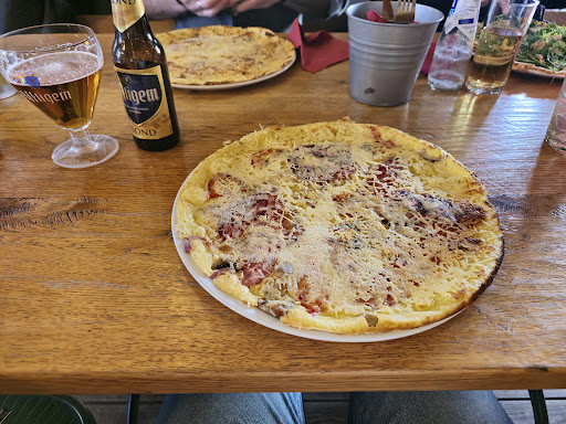 Read moreLeuke locatie maar daar is ook alles mee gezegd. Eerste bezoek. Mijn favoriete (shoarma)pannekoek met knoflooksaus besteld en de piepjonge bediening gevraagd of ze er ook sambal bij konden serveren; "ja hoor". Vervolgens een dunne pannekoek geserveerd met daarop een droog blaadje sla, stukje tomaat en komkommer; kraak noch smaak, en een vingerhoedje knoflooksaus. Niet de gevraagde sambal. Het jochie doet navraag en zegt "die is op". Tja, menneke...als ik dat had geweten had ik iets anders besteld. Op de pannekoek geen shoarma te bespeuren. Wel een laag geraspte kaas met daarin een paar(!) stukjes shoarma, alles meegebakken met het beslag. Wat kun je zeggen over een shoarma-pannekoek? In elk geval dat deze er hier niet uit ziet en beter "Pannekoek geraspte kaas, versierd met 5 stukjes shoarma" had kunnen heten. Zo smaakte hij dus ook. Misschien dat Het Wonderbos eens bij de concurrent kan kijken hoe je een smakelijk pannekoek serveert (ook qua presentatie op het bord). Dat geldt voor zowel de shoarma- alsook de bestelde geitenkaas/spek variant. Misschien dat de tafeltjes ook opnieuw genummerd kunnen worden, beginnend met 1 i.p.v. 0 omdat wij tot 3x toe gerechten kregen aangeboden die voor een andere tafel waren bestemd (5 tafeltjes bezet). Het lijkt erop of men hier door de bomen het (Wonder)bos niet meer ziet? Toch een postief punt: de wijn wordt in een fatsoenlijk gevuld glas geserveerd tegen een...