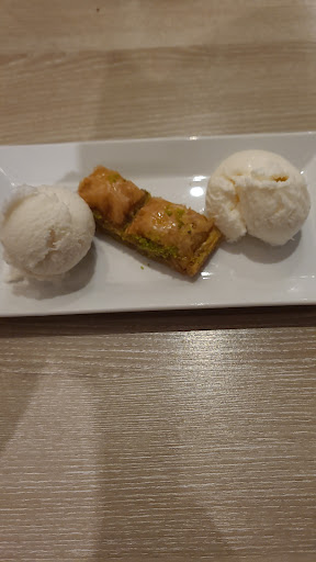 Read moreOp een gewone dinsdagavond om 7 uur hadden wij een tafel gereserveerd en dat is hier nodig. Het restaurant zat helemaal vol. Veel gezinnen met kinderen die in deze vakantieperiode even komen eten. Een uur later begint het duidelijk rustiger te worden. De mensen worden waarschijnlijk gelokt door de aanbieding van een 3-gangen keuzemenu voor €18 pp. Wij probeerden dat deze eerste keer ook. Met een ouzo in de hand bekeken we het speciale 3-gangen deel van de kaart. Als voorgerechten kozen wij beiden Manti (gevulde pastabuideltjes met rundergehakt en yoghurtsaus). Lekker en pittig. De wijn die wij bij dit alles uitgekozen hadden (een Nemea) was goed. Het hoofdgerecht was een mixed grill; Met souvlaki, kip, bifteki en gyros. Alles met goede en verschillende smaken waarbij de kwaliteit van het vlees goed is. Als nagercht kan natuurlijk de baklava met vanille ijs niet ontbreken. Mijn tafelgenoot koos voor pompoen met ijs. Het zijn allemaal wel redelijk afgemeten porties (maar zeker voldoende) die je krijgt maar voor zo’n prijs is dat ook niet zo vreemd. Het interieur bestaat uit veel nep-steen, een sterrenhemel en was wat donker. De kaart, zwarte letters op een wat groen/grijze achtergrond, was voor ons met 50+ ogen halverwege de zaak, slecht te lezen. De bediening was snel, alert en vriendelijk. Bij ons was de tijd tussen voor/hoofd-gerecht net wat te lang maar op dat moment waren wel veel mensen aan het afrekenen.