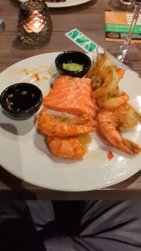 Read moreZe zeggen wel eens:" Wat je van ver haalt is lekker". Dit kan met recht gezegd worden bij Wereldrestaurant Amber. Op steenworp afstand van de snelweg A59 en met een behoorlijk parkeer-terrein. We kwamen niet voor de afhaal maar voor de all-in. Eerste indruk bij binnenkomst is een mooi interieur alhoewel het restaurant qua oppervlak niet oversized is zijn de gangpaden ruim genoeg om bij de uitgestalde gerechten e.d. te komen. Af en toe een kleine blokkade vanwege personen die een iets royaal bourgondische leefstijl erop na houden. Eten is goed en smakelijk en men heeft ruime keuze. Als liefhebber van garnalen keuze uit grote Chinese garnalen, Thais bereide garnalen, garnalenspies en gepelde garnalen. Mini hamburgers, zo lekker, sushi, overheerlijk, diverse vlees- kipspiezen, diverse vis en vlees. Voor dessert meer dan genoeg keus en voor ijs liefhebbers, heb nog niet eerder zo'n heerlijke citroenijs gegeten in een restaurant. Prijs/kwaliteit echt een hele dikke plus. Sfeer is uitmuntend en nog niet vernoemd, men heeft zelfs aan kinderen gedacht door speelruimte op een bovenverdieping. Toiletten gewoonweg schoon. Al met al een restaurant die wij zeker aanbevelen en uitnodigt...