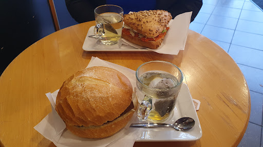Read moreIt took me 35 mins to get my bread. Sure maybe due to the busyness. But then I wanted to make a menu with bread and drink, which is 7,5 euro. And I asked if it is possible to add one extra euro to get the baguette instead, the price suddenly went up to 10,5 euro. And the whole communication was awful. Besides this, they also just gave me the bread with just a paper bag. Without any wrapping or anything. So when I opened it, 60% of the toppings just fell into the bag. It was a...