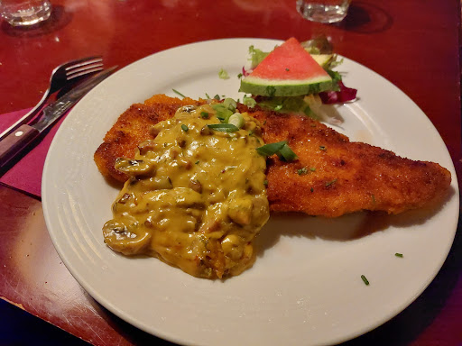 It is a very strange place. It is located on one of the main streets, so I would expect a typical restaurant, but when you go inside, half of the place looks kind like a restaurant and the other half like a typical pub. On one side you eat your dinner while sipping wine, and on the other side you hear the loud arguments of drunken older men. The staff were helpful in explaining the beers available and finding out at our request which part of the kangaroo we were currently eating. Portion sizes are average for my taste. The desserts were quite tasty. The main entrance was quite small as well as the tables stood quite densely so those with limited mobility may have slight problems. Prices could be debated but I assume location plays one of the main...
