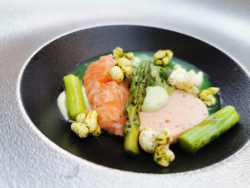 It was during the week of the heatwave and the lovely hostess greeted us with a gazpacho of watermelon! Perfect start! Everything else was a highlight in its own right: the Salmon was to die for!