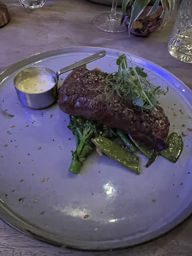 Read moreWe went there to celebrate a family event. The restaurant is quite dimly light which is nice for a romantic evening but certainly not of you have issues with your eyesight (forget about adjusting your make-up in the bathroom as well). Food was quite ok, however the culinary experience was somewhat ruined by the dessert. We had a grand dessert to share, that was presented on a wooden board. Great idea, unless you also use this board for presenting meat on other occasions, which was the case for our wooden board. Thus we had the unique opportunity to taste barbecue smelling and tasting chocolate and vanilla ice-cream and biscuits. Service was quite ok, if we don't consider offering lemony hand rincing water or wet-tissues a must when being served mules. So we ended up washing our hands in the toilet then walked back with dripping hands to our tables, because the hand dryer was out of order and nobody had been aware of the existence of...
