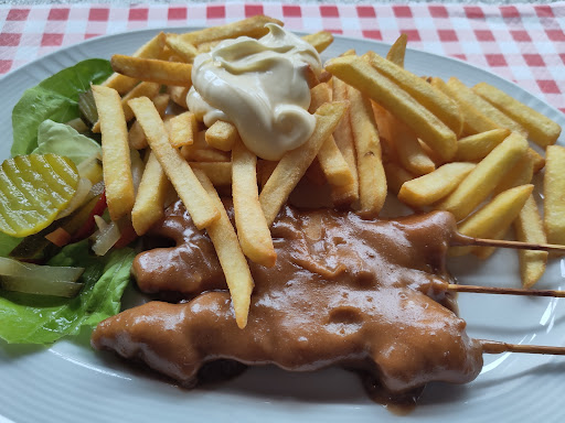 After a day of cycling on a Monday, we were looking for a place to have a drink. The menu was on the terrace, and since we wanted to know what they had to offer (especially specialty beer), we took the time to read it. The staff spoke to us rather grumpily, so we decided to go inside for a drink. (Would we eat here too?) The drink wasn't bad, only the stem of the glass wasn't clean. The atmosphere is typical of a pub. A few locals were sitting at the bar drinking beer, and there was quite a bit of cursing. Forget about the food. At the table behind us, the staff and a guest were sharing local gossip. Pay the bill and leave.