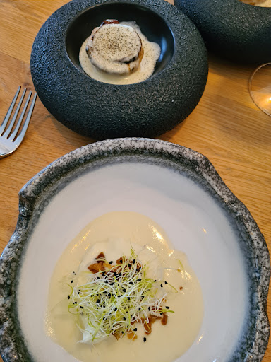 We hebben prima gegeten. Het was ook veel, zat echt vol toen we weg gingen. De bijpassende wijnen waren prima. Niet heel spannend, maar gingen goed bij de gerechten. Bediening is vriendelijk. Service mag...