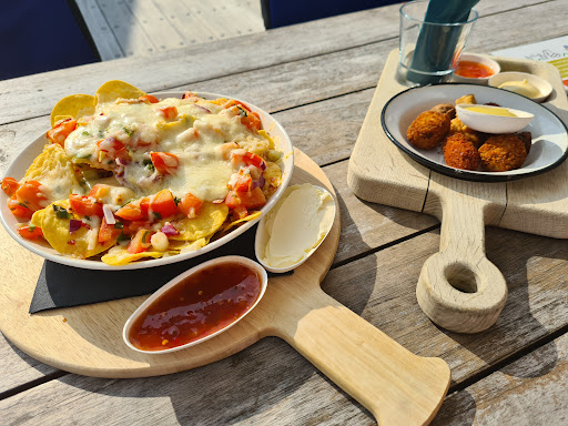 Read moreTegen beter weten in hier weer gegeten. "Het is zo'n mooi plekje en het eten komt lekker vlot" vond mijn vrouw. Dat klopt inderdaad maar het is de teleurstelling niet waard. Voorgerechten eendenborst en lamstaartje; vrij onuitgesproken eendenborst op taaie stukjes geroosterd brood met een smeerseltje en wat veel te zoet fruit (mango uit blik?). Teveel garnering van appel onder een teveel aan filodeeg met daarin te weinig lam(sgehakt). Hoofdgerechten duo van kabeljouw en tournedos en een hamburger; net te ver gegaarde totaal smakeloze vis en een klein stukje ossenhaas dat zonder te vragen medium geserveerd werd. persoonlijk vind ik zo'n mooi stuk(je) vlees bij medium -rare al eigenlijk teveel gegaard dus jammer. Ossenhaas heeft van zichzelf al niet veel smaak dus het totaal ontbreken van peper, zout of enige ander vorm van kruiding maakten de smaakbeleving nog bedroevender. De bijgeleverde saus werd i.p.v. een begeleiding een absolute noodzaak. De bijbestelde gebakken aardappeltjes zagen er prachtig uit en waren ook nog eens goed op smaak. Maar die pluspunten werden volledig teniet gedaan doordat ze niet (meer) krokant waren en ieder mogelijk korstje misten, letterlijk een slappe hap. overig garnituur was redelijk. Stoofpeertje had iets zachter en iets zoeter mogen zijn maar dat is een kwestie van smaak, mijn vrouw vond die juist perfect zo. Net als de reepjes pastinaak die voor mij iets teveel bite hadden. Wortel o.k. De gestoofde tomaatjes waren prima maar haal ze van het steeltje af. Ik snap dat het er leuk uitziet maar als je iets niet kunt eten leg je het niet op het bord. De Hamburger was gewoon goed. Het vlees zelf had iets meer toegevoegde smaak mogen hebben (al was het basis peper en zout) maar over het algemeen best een goede burger. Ook de patat was gewoon goed . En gelukkig een behoorlijke portie. Dessert een Dame Blanche; De hoop op los geserveerde warme chocoladesaus had ik gelukkig al losgelaten want inderdaad een coupe met (te) royaal standaard-vanilleijs, cacaopoeder, slagroom uit een spuitbus en een paar streepjes chocosaus en een stokje melk/witte chocola. Pluspunt in de bediening was de jongeman in excentrieke kleding (leuk) die keurig van rechts opdiende. Minpunten de jongedames die niet informeerden of het gesmaakt had en die na het laten vallen van glaswerk onvoldoende excuseerden en opruimden. De grote hoeveelheid aanwezige kleine kinderen ( oeps, herfstvakantie) en de krijsende hond aan het naaste tafeltje deden het gehele beleven geen goed. Een rekening van boven de 100 euro hiervoor was niet in verhouding met de ervaring. Niet meer...